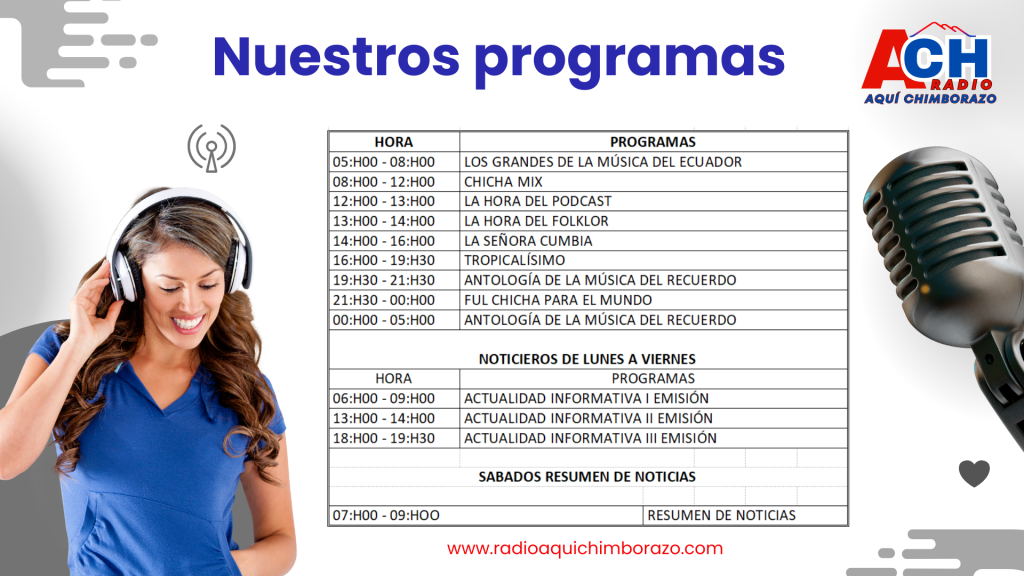 Radio Aquí Chimborazo es el medio que vive y respira la esencia de nuestra provincia. Nacimos de la necesidad de ofrecer un espacio de comunicación veraz, cercano y positivo. Más allá de la frecuencia, somos un punto de encuentro radial y digital para todos los chimboracenses, dentro y fuera del Ecuador.